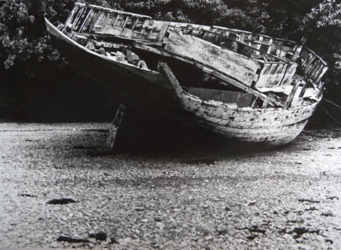 Vue de l'épave de la gabarre 'Azalée' sur les rives du Trieux, près de Coz Castel, vers 1980, avant qu'elle ne soit détruiteImmatriculation