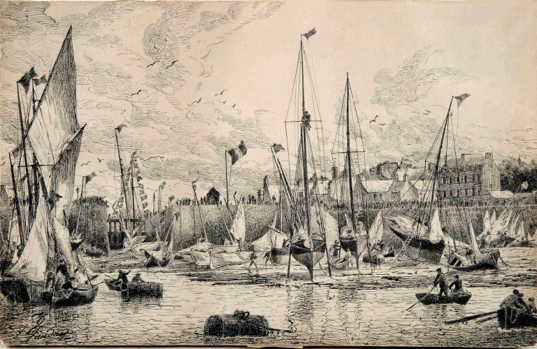 Dessin à la plume de Faudacq : l'avant-port de Paimpol, 4ème quart 19ème siècle (collection particulière)Immatriculation