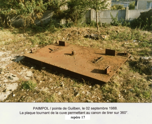 Plaque tournante de la cuve à canon, repère n° 17, 2 septembre 1988 (carte, Alain Bohée, collection particulière)Immatriculation