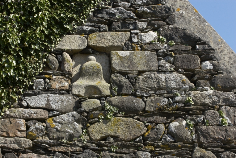 1. Vestiges de l'ancien manoir du Hellegoat. Détail du pignon : cloche sculptée. Section D2 parcelle 321Immatriculation