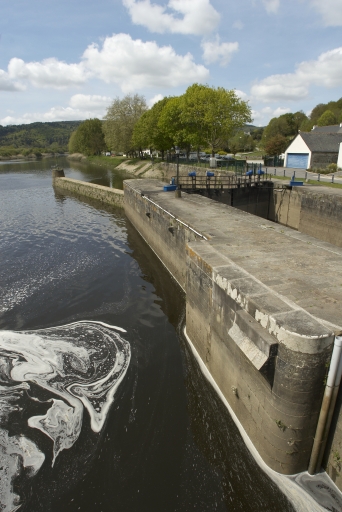 Écluse : bajoyer de large et pare-gravier, vue depuis l'amontImmatriculation