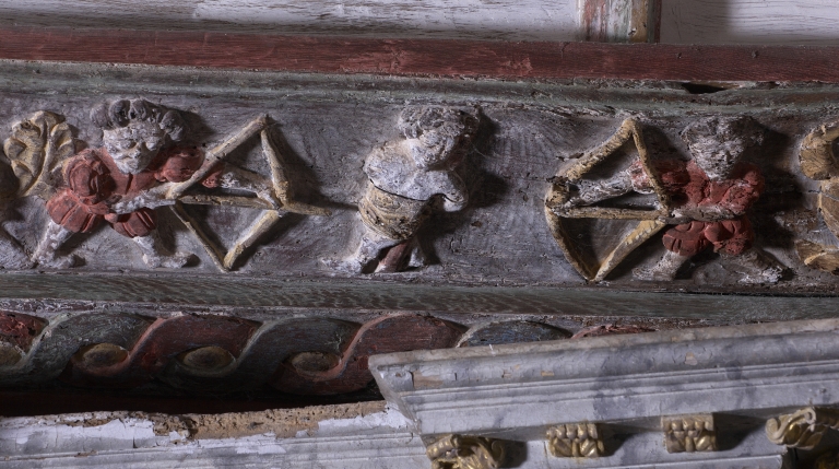 Choeur, mur nord. Détail de la sablièreImmatriculation