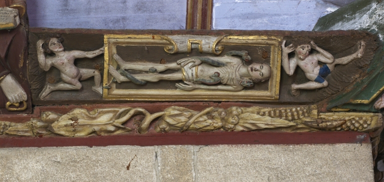Intérieur, mur nord de la nef, détail de la sablièreImmatriculation