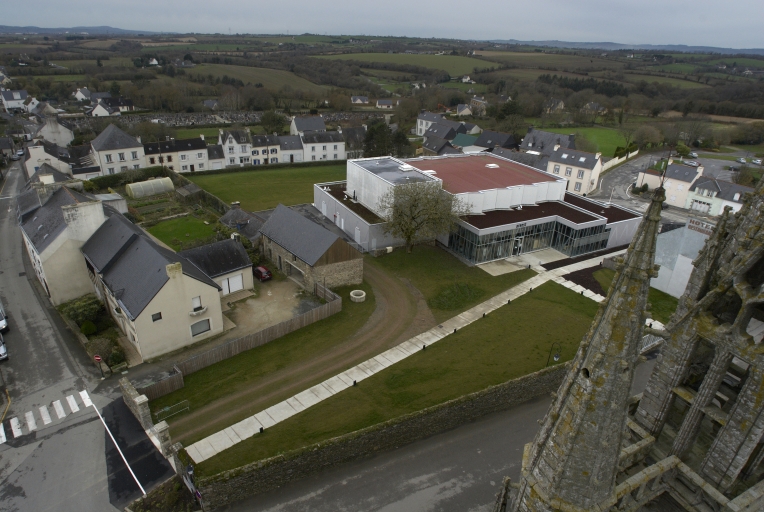 Nouvelle salle de spectacle (ARVEST) dans l'enclos de l'ancien presbytère, vue depuis le haut de la tour-porche de l'égliseImmatriculation
