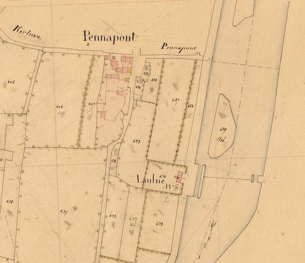 L'écluse sur le cadastre de 1847 (A. D. Finistère, 3 P 29/2 - 1847)Immatriculation