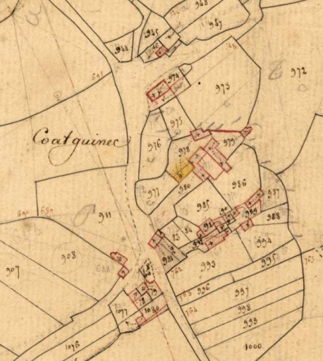 Le hameau en 1836. Extrait du cadastre, section A 2 (A.D. Finistère , 3 P 84)Immatriculation