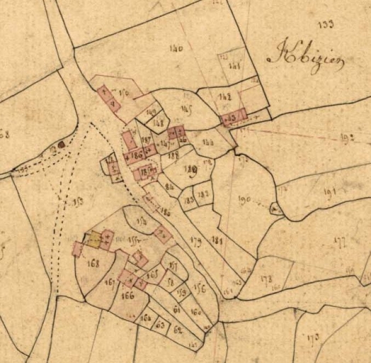 Le hameau en 1836. Extrait du cadastre, section B 1 (A.D. Finistère, 3 P 84)Immatriculation