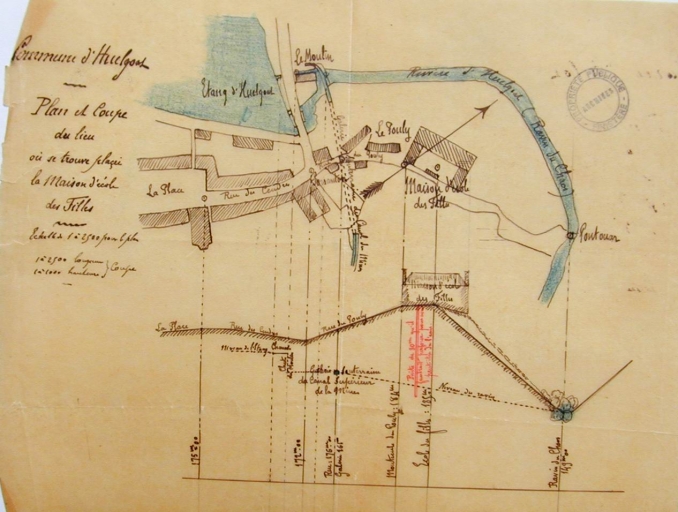 Le Pouly. Plan de l'emplacement de l'école communale des filles construite en 1908 d'après les plans d'Eugène Guiomar, architecte (A.D. Finistère, 2 O 597)Immatriculation