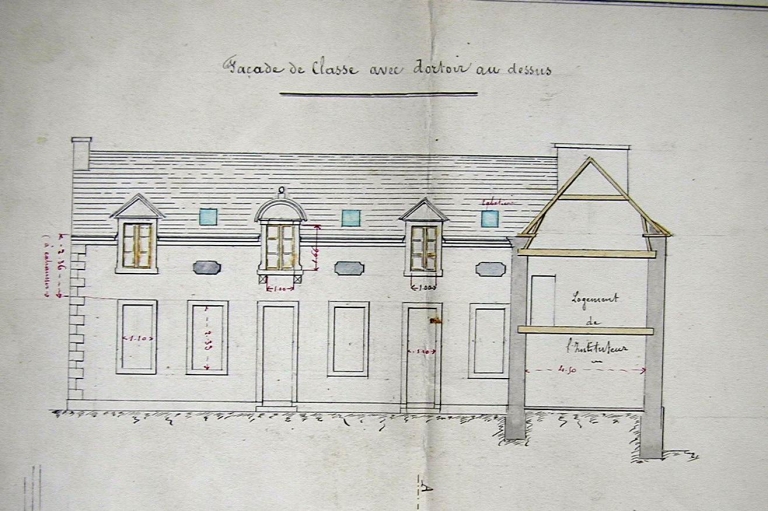 Projet d'agrandissement de l'école pour garçons, étage de dortoirs, 1882. Par Ch. Serrurier, architecte (A.D. Finistère, 2 O 597)Immatriculation