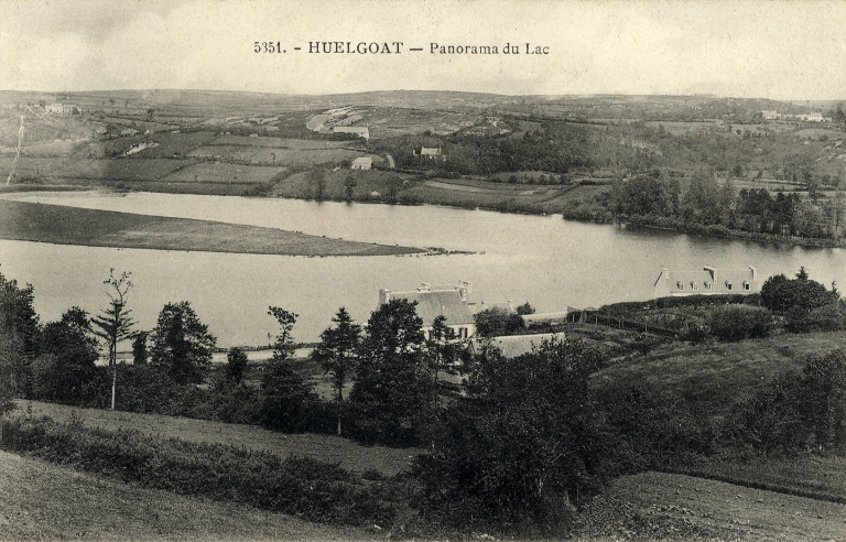 Le lac et le paysage rural à l'ouest du bourg, vers 1900 (Fonds Villard, SDAP, Quimper)Immatriculation