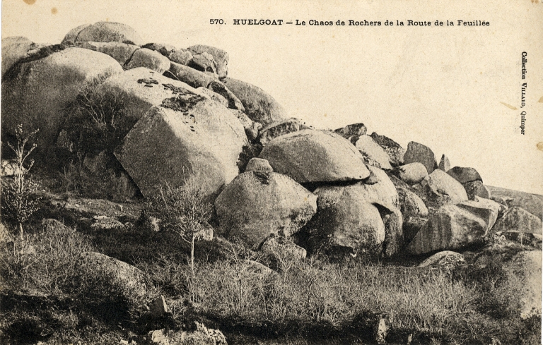 Route de la Feuillée, chaos granitique. Carte postale, vers 1900 (fonds Villard, SDAP Quimper)Immatriculation