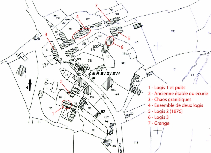 Localisation des éléments repérés (fonds : cadastre de 1994)Immatriculation