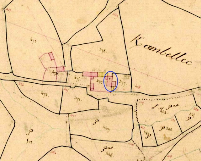 Extrait du cadastre de 1835, section D 1 (A. D. Finistère, 3 P 130)Immatriculation