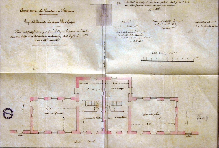Projet d'établissement scolaires pour filles et garçons en 1884, plan au sol modifié (A. D. Finistère, 2 O 887)Immatriculation