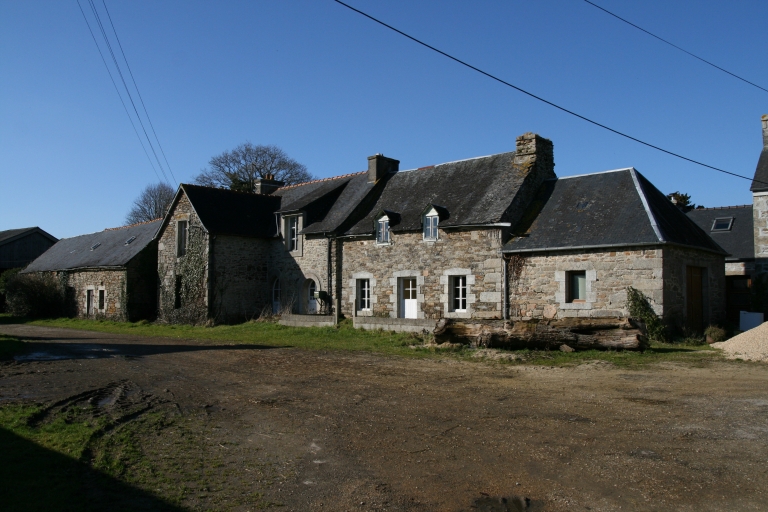 Camblan, alignement de deux logis (logis à avancée toit en bâtière à comble à surcroît du 17e siècle remanié ; logis élémentaire à deux pièce à comble à sucroît du 18e siècle transformé au début du 20e siècle) et dépendance, élévation sud-estImmatriculation