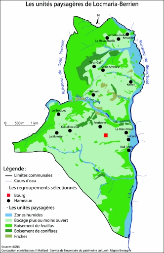 Les maisons, fermes et hameaux de la commune de Locmaria-Berrien (fusionnée en Poullaouen en 2019),