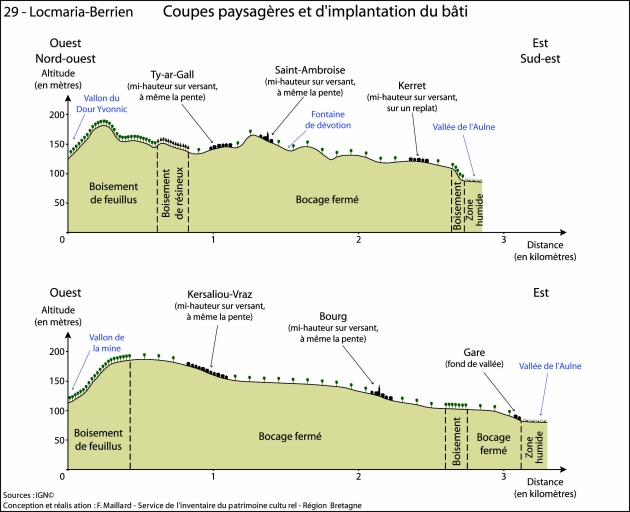 Les maisons, fermes et hameaux de la commune de Locmaria-Berrien (fusionnée en Poullaouen en 2019),