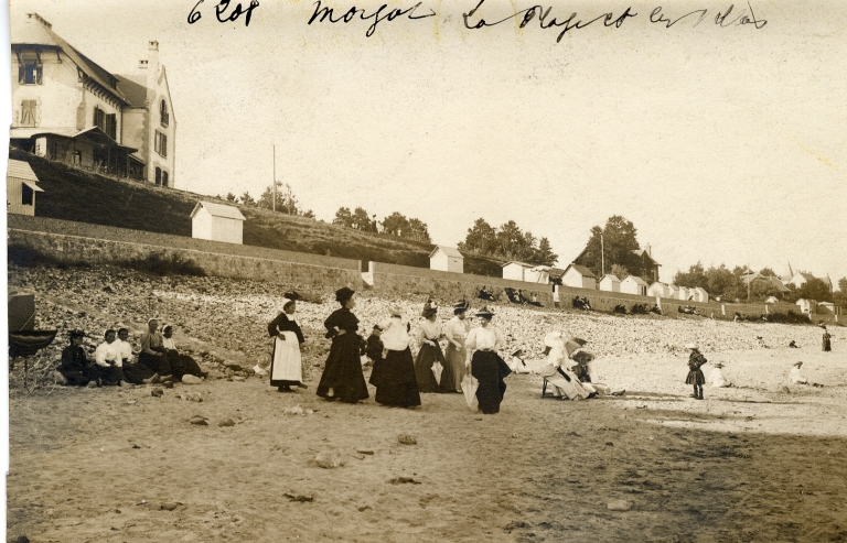 Morgat, la plage, début 20e siècle. Photograhie ancienne (Fonds Villard)Immatriculation