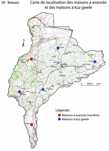Les maisons, fermes et hameaux de la commune de Bolazec,