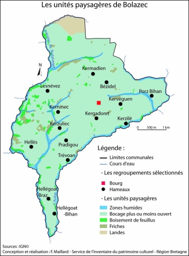 Les maisons, fermes et hameaux de la commune de Bolazec,
