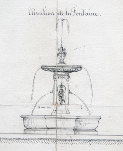 Détail du projet de la fontaine et de la conduite d'eau, par l'architecte Jules Boyer, 1866 (Archives municipales de Port-Launay)Immatriculation