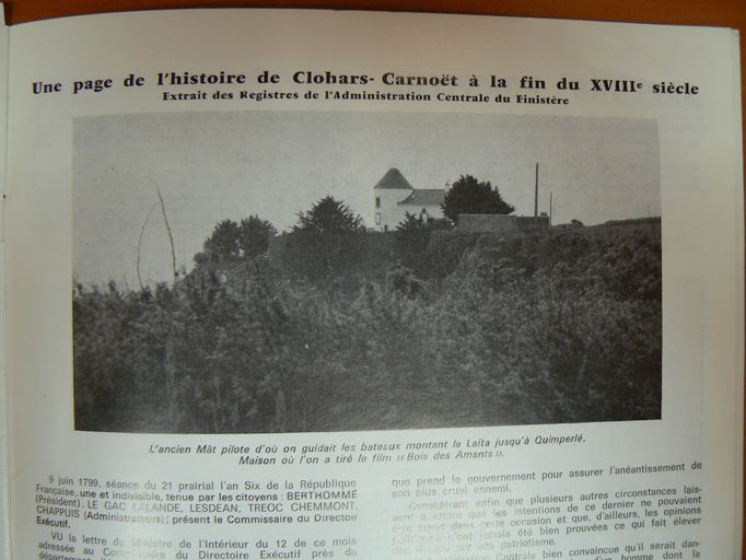 Le mât pilote dans un bulletin municipal de Clohars-Carnoët en 1978.Immatriculation