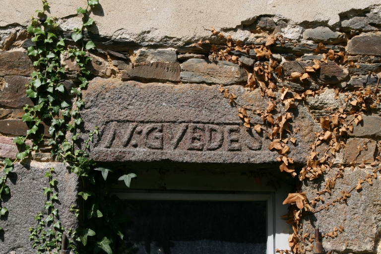 Traon Izella. Détail linteau de fenêtre : N : GVEDES. Section ZA parcelle 3Immatriculation
