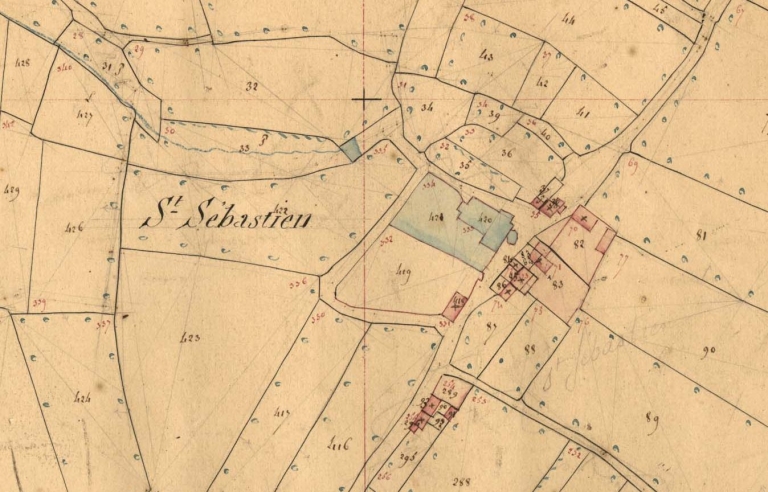 Chapelle Saint-Sébastien. Extrait du cadastre de 1847, section E1 (A.D. 29, série 3P 265)Immatriculation