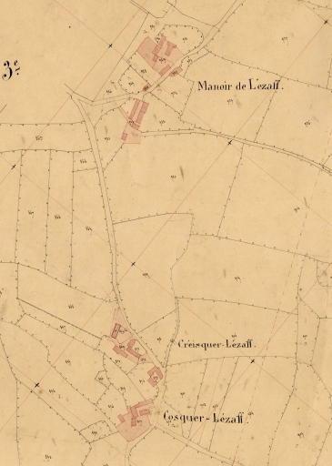 Le manoir de Lézaff et ses métairies sur le cadastre de 1848, section E 5 (Archives départementales du Finistère, 3 P 47)Immatriculation