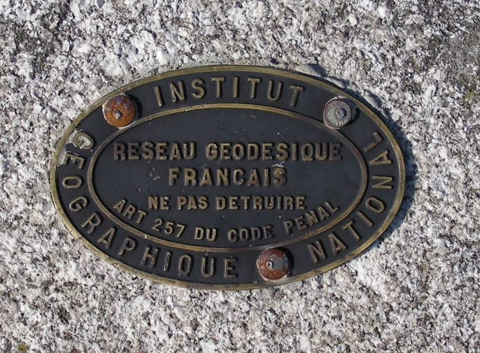 Sommet du Ménez Hom : marquage de la station astronomique, plaque du réseau géodésique français (I.G.N.)Immatriculation