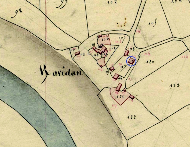 Localisation sur l'extrait cadastrale de 1813, section I 1 (A. D. Finistère, 3 P 163)Immatriculation