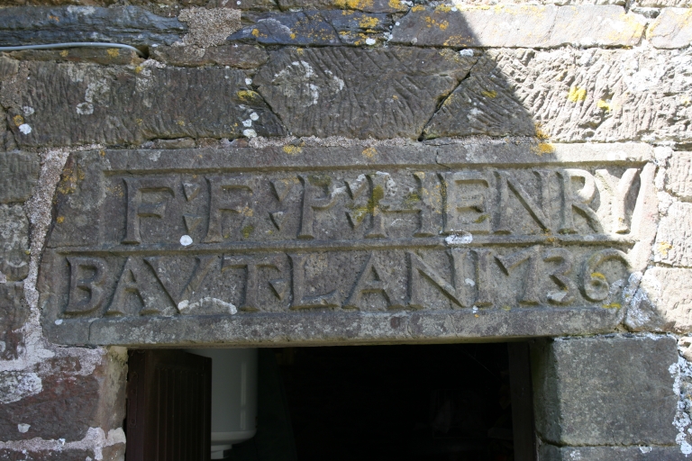 Ancienne maison de prêtre (?), élévation est, partie cellier, détail du linteau de la porteImmatriculation