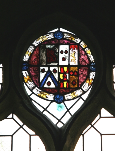 Intérieur : baie sud de la nef : vitrail ancien frappé d'armoiriesImmatriculation