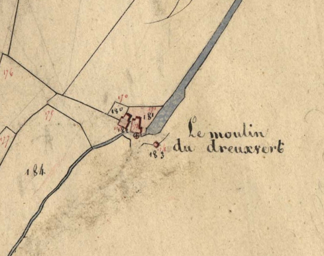 Le moulin du Drévers en 1812, section I 2 (A. D. Finistère, 3 P 163)Immatriculation