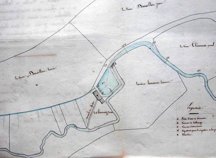 Plan de 1837 d'un moulin et de ses abords sur le ruisseau de Ster-ar-Choat construit sans autorisation et dont le propriétaire, Michel Tranvoëz, demande sa régularisation (A. D. Finistère, 7 S 82)Immatriculation
