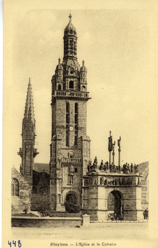 Partie occidentale de l'église et calvaire, vue depuis le sud (fonds Villard, carte postale début 20e siècle)Immatriculation