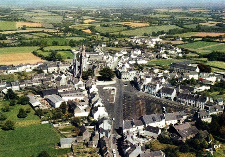 Vue aérienne du bourg depuis le sud suite à l'aménagement de la place, vers 1960 (collection particulière Jean Riou)Immatriculation