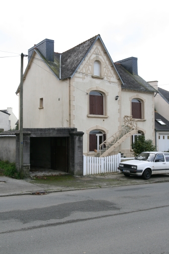 76 rue de Carhaix, maison des années 1930 avec avant-corps et rampe d'escalier en ciment imitation bois, élévation nord-estImmatriculation