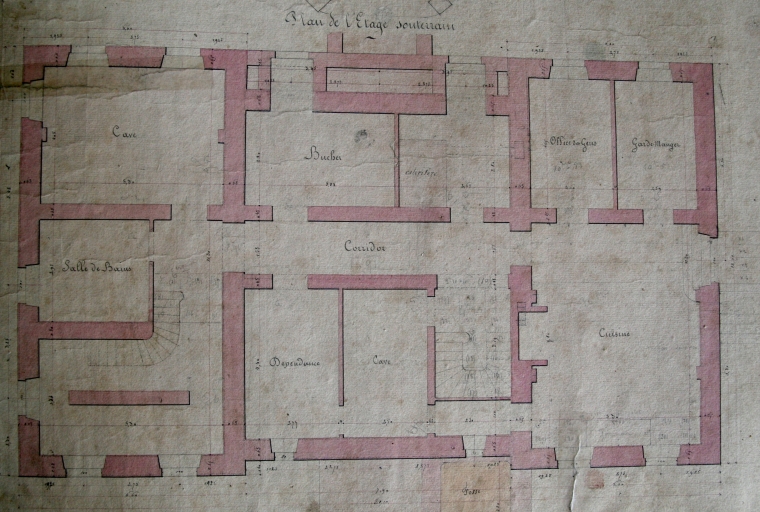 Plan de l´étage de soubassement (1851). Dessin Joseph Bigot, architecte (collection particulière)Immatriculation