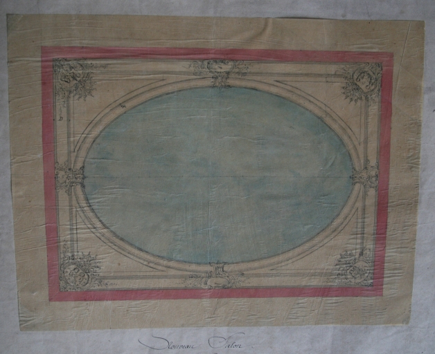 Salle à manger, plafond (1851). Dessin Joseph Bigot, architecte (collection particulière)Immatriculation