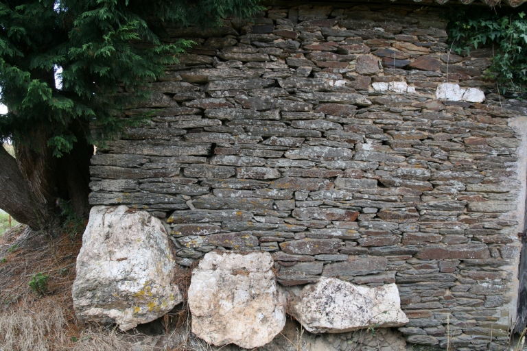 Scrab ar Moal, détail de mise en œuvre du schiste sur un soubassement en quartziteImmatriculation