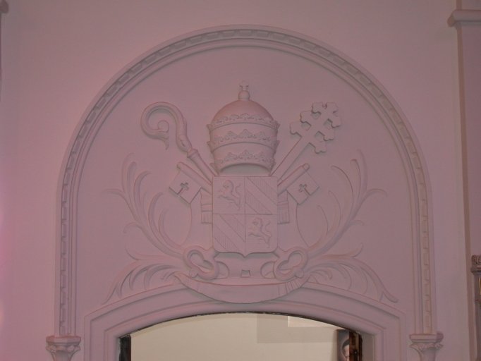 Bas-relief au dessus de la porte de la chapelle nord : armoiries du pape Pie IXImmatriculation