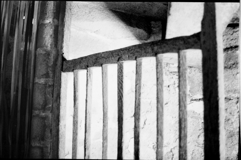 Balustrade en bois du haut de l'escalier en vis, 1974Immatriculation