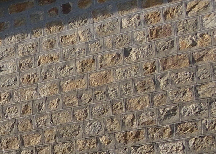 Saint-Georges-de-Reintembault, l'Agère, détail de l'appareillage à joints dessinés.Immatriculation
