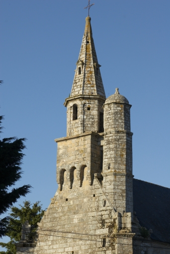 Clocher et tour d'escalier de la chapelle.Immatriculation