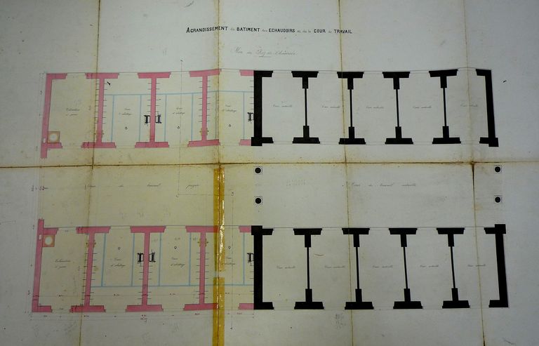 Construction d'un bâtiment pour échaudoirs et cour de travail par Edmond Bassac, 1891. AM Vannes 1M197.Immatriculation