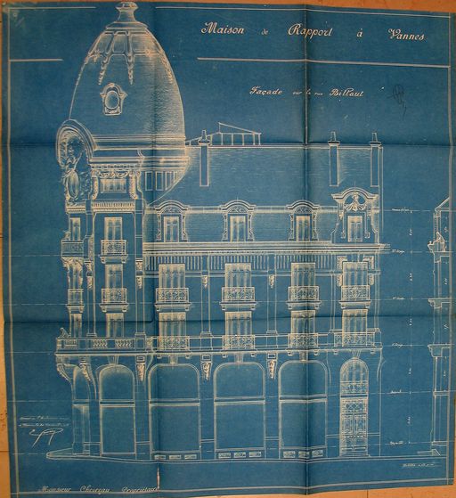 Maison de rapport à Vannes : façade sur rue Billault par Edmond Gemain, 1912. AM Vannes 5I162.-