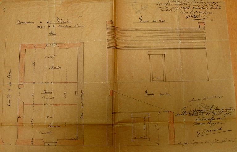 Plan de la maison Ribouleau n°23 de la rue de la Boucherie non repérée, 1920. AM Vannes 5I162.Immatriculation
