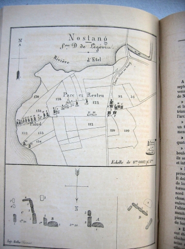 Plan de localisation des dolmens de Nostang. Dessin, Abbé Luco, 1884 (BSPM, 1884)Immatriculation