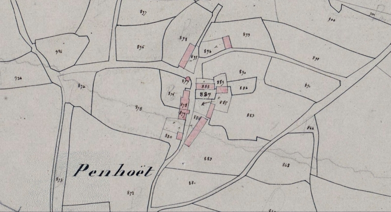 Penhoët, partie est. Plan cadastral 1837, section B2 (AD Morbihan 3P 121)Immatriculation